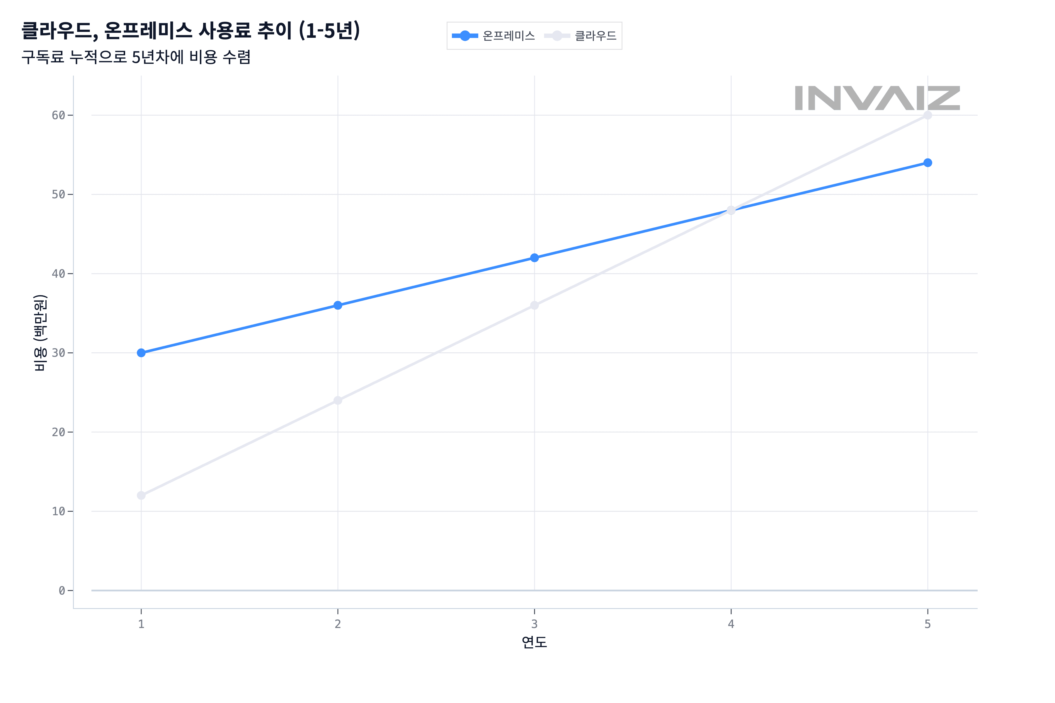 도입 후에는 매년 초기 투자의 약 20% 수준의 유지보수비가 계속 나갑니다. 하드웨어 수명이 다하면 교체비도 발생하고, 소프트웨어 업데이트도 별도 비용입니다. 하지만 한 번 구축되면 사용량이 많아져도 추가 비용이 크게 늘지 않습니다. 업무가 2배, 3배로 늘어도 라이센스비는 그대로일 수 있다는 뜻입니다.