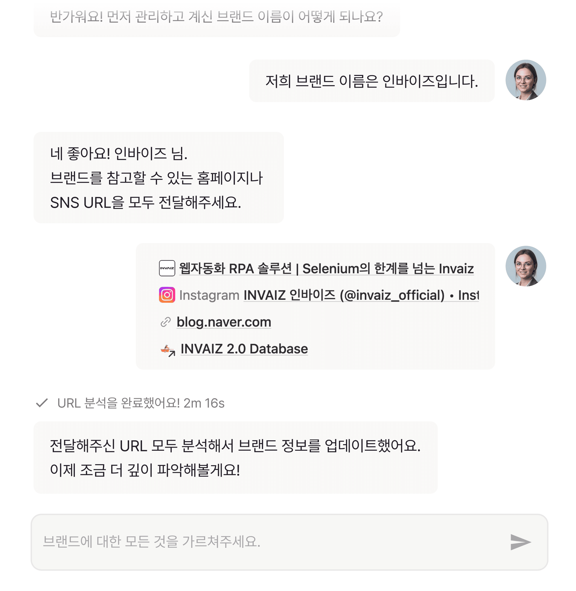 브랜드의 맥락을 학습한 뒤, 키워드·트렌드·성과 기반으로